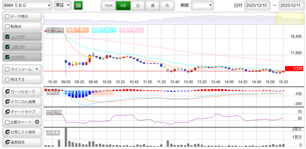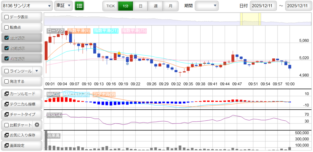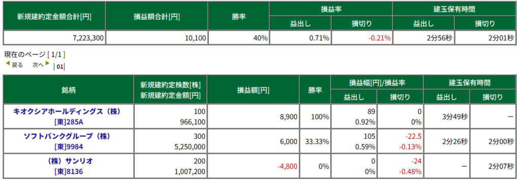日計りの呼吸 壱ノ型 霹靂一閃ですが、こちらはストレートで損切りとなりました。