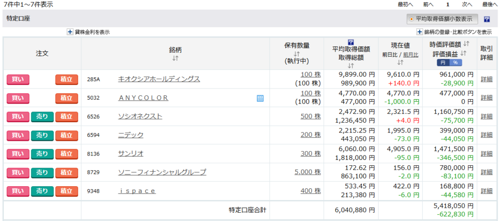 現在の保有銘柄の含み損益は、-622,830 円となりました。前日比 -39,500 円