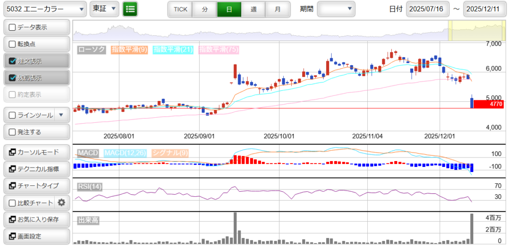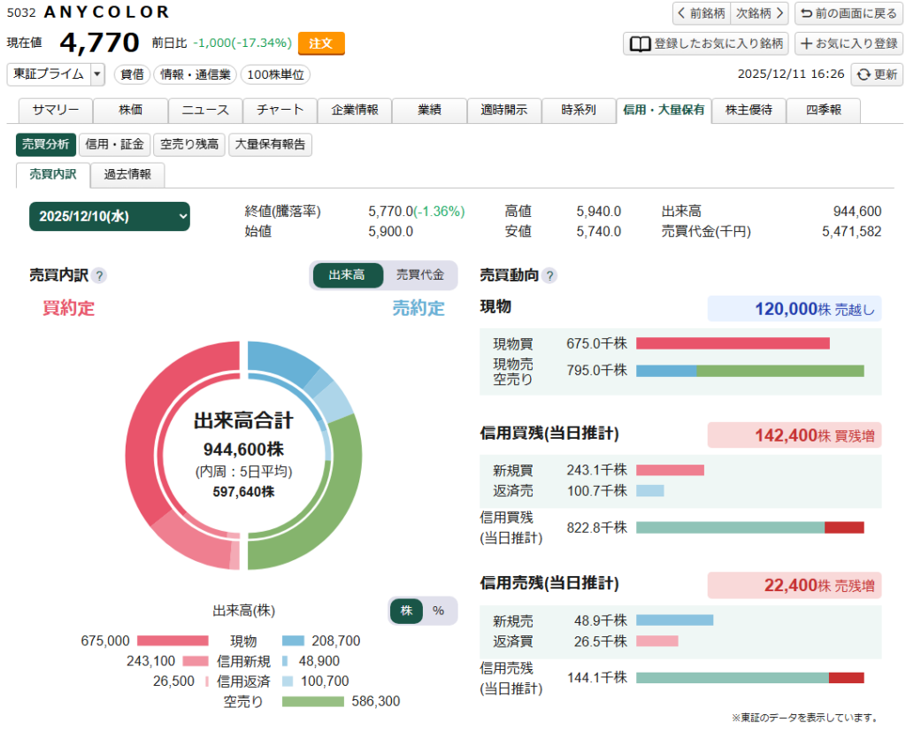 大引け後、松井証券のマーケットラボ(普段見ません)で確認したところ、