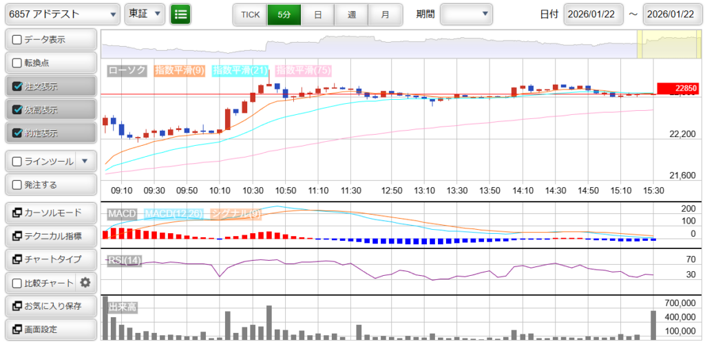 落ち込んでいた理由は、本日取引しようとしていた本命「6857 : アドバンテスト」に、