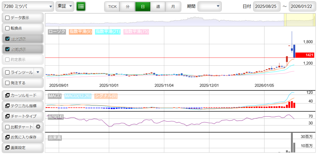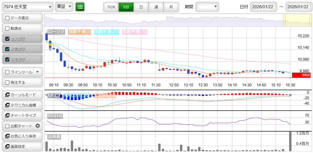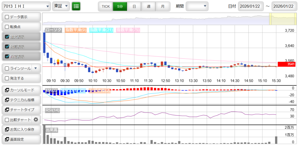 数日前から注目されていて、株価が高値を付けてから急落している場面で買いました。