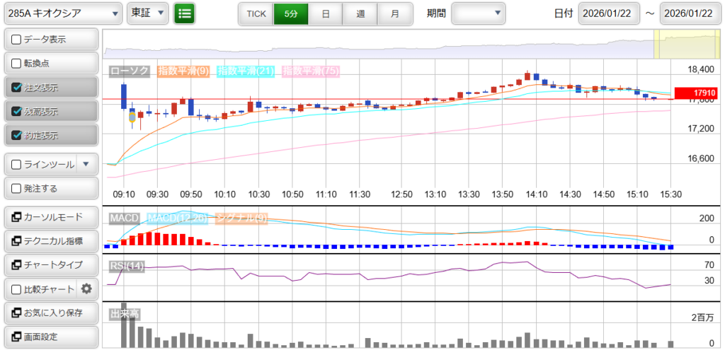 寄付きからチャートを眺め、エントリー条件が揃っているのにも関わらず、