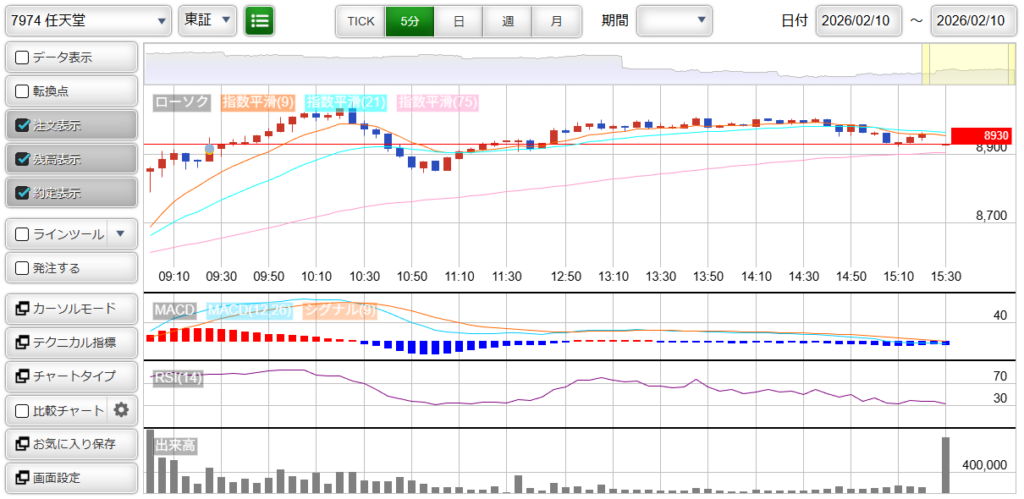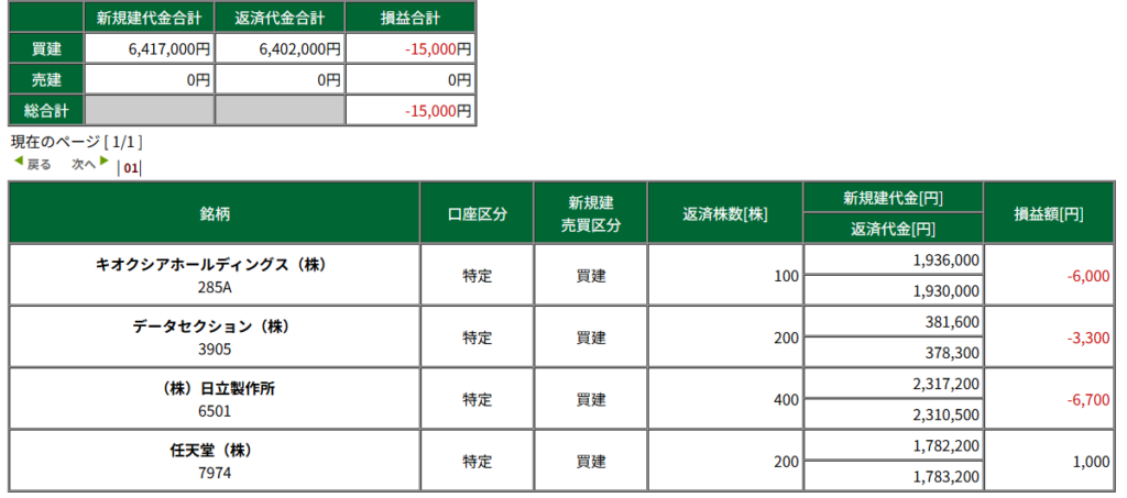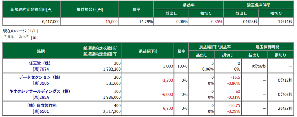 そのため、「7974 : 任天堂」のトレードについて、利益を上げることができませんでした。