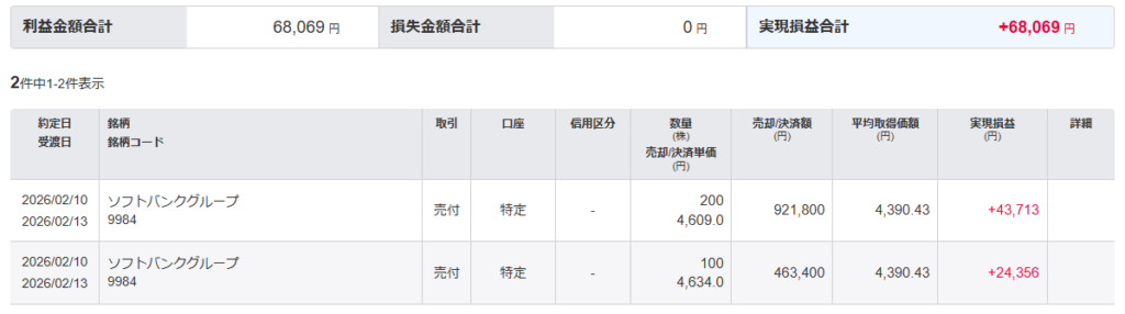 「9984 : ソフトバンクグループ」を全決済しました。