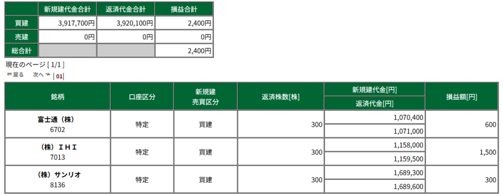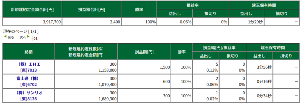 本日の収支結果は、+2,400円でした。