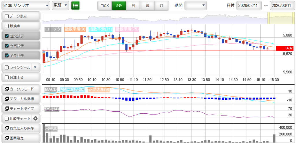 8136 : サンリオ 損益 : +300円 ※不要なトレード