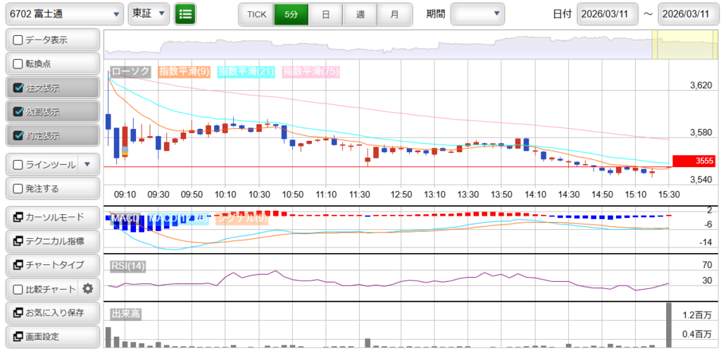 6702 : 富士通 損益 : +600円