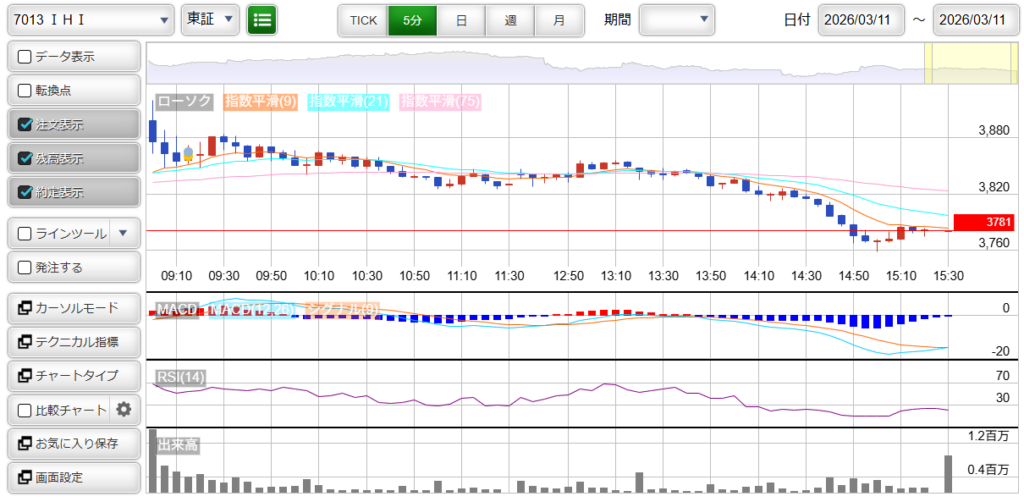 7013 : IHI 損益 : +1,500円