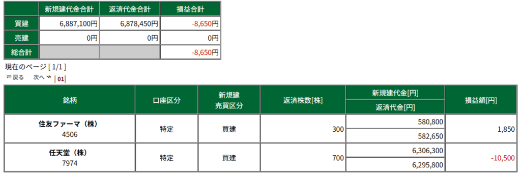 今日も「7974 : 任天堂」で、マイナス収支を出してしまいました。