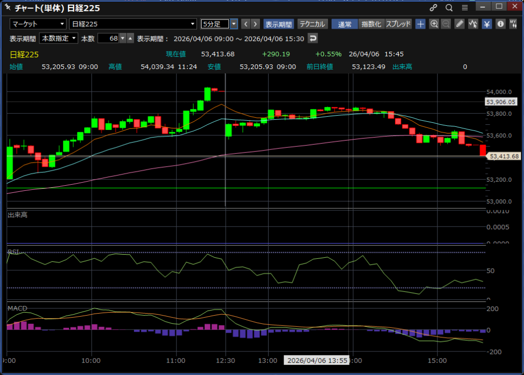 本日の日経平均は、前日比 +290.19円の、53,413.68円となりました。